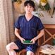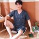 Pár Loungewear Ženy Léto Hedvábí tenký Krátký rukáv Korejský Jacquard Pruhované Ledové Hedvábné Domácí oblečení Pánská dvoudílná sada