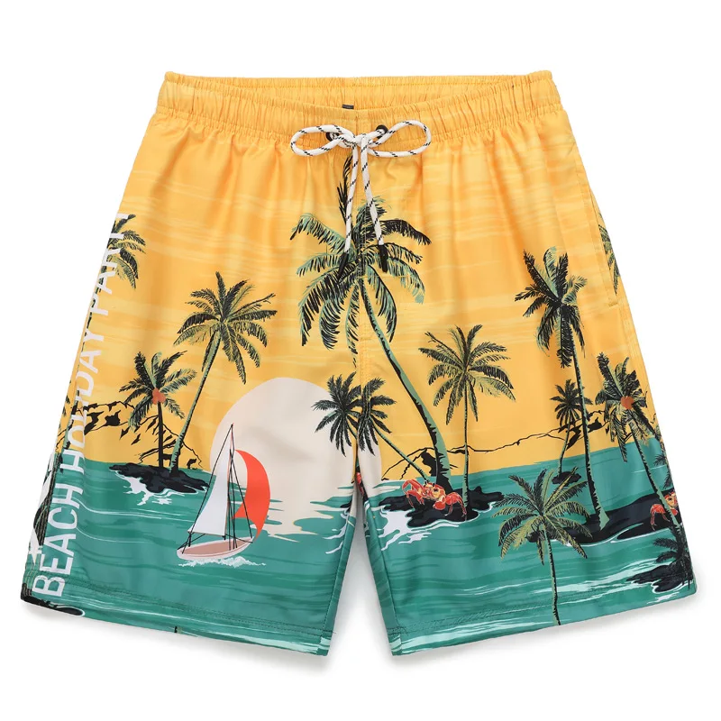 Pohodlné volné střihy, ležérní letní kraťasy s havajským potiskem, rovné pánské plážové kraťasy, velkoobchod 988