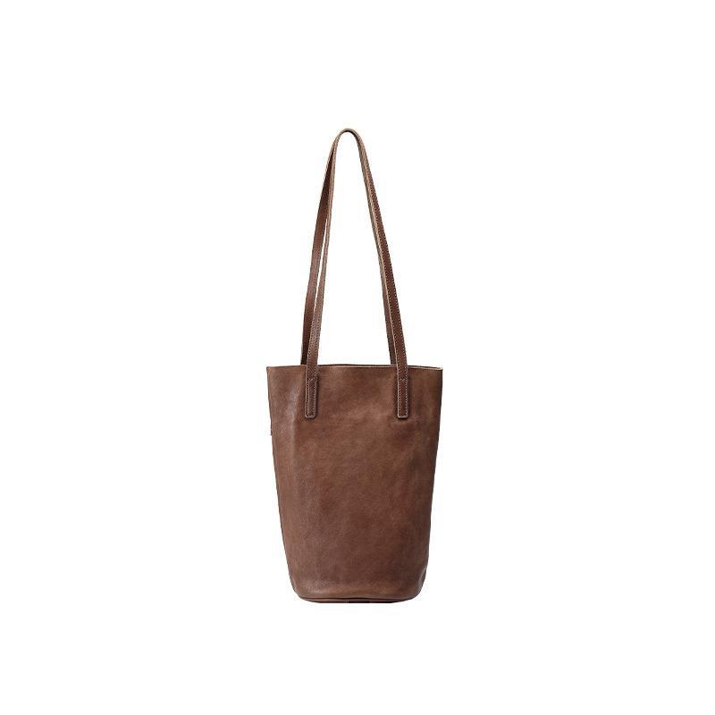Qiu Zhen Lazy Flower Tube Bag Women's Genuine Leather Shoulder Bag Soft Leather Commuting Large Capacity Plant Tanned Cowhide Bucket Bag Women's Bag