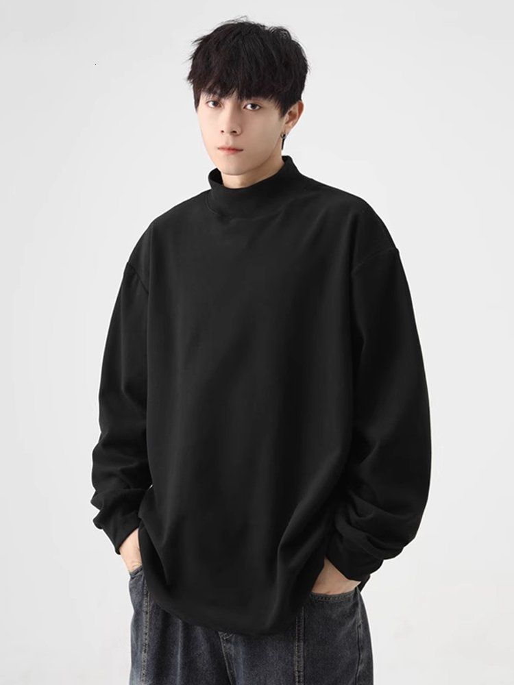 QOTRIOCK De Rong Half Turtleneck Long Sleeve T-Shirt For Men, Autumn And Winter Trendy Double-Sided Fleece Base Shirt,