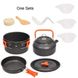 Sada nádobí pro kempování, přenosné hliníkové nádobí, venkovní nádobí, sada na vaření, pánev, miska, konvice, hrnec, turistika, grilování, piknik