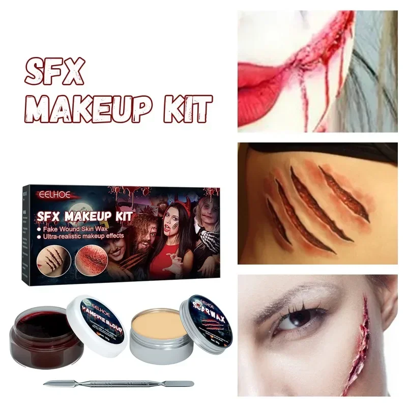 EELHOE SFX Makeup Kit Scars Wax Halloween Stage Fake Wound Skin Party Blood Scar Painting Halloween Special Effects Make up Set 1 set