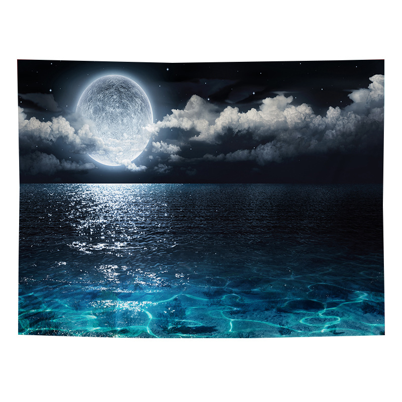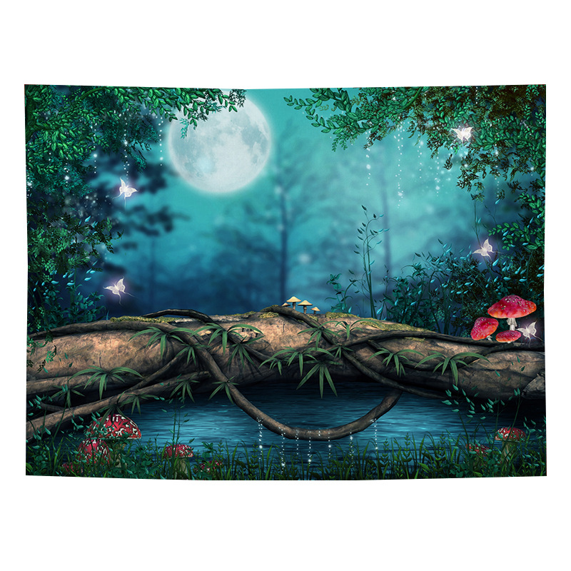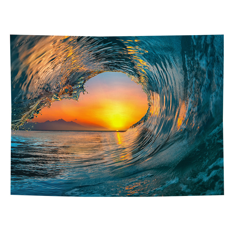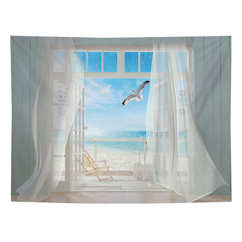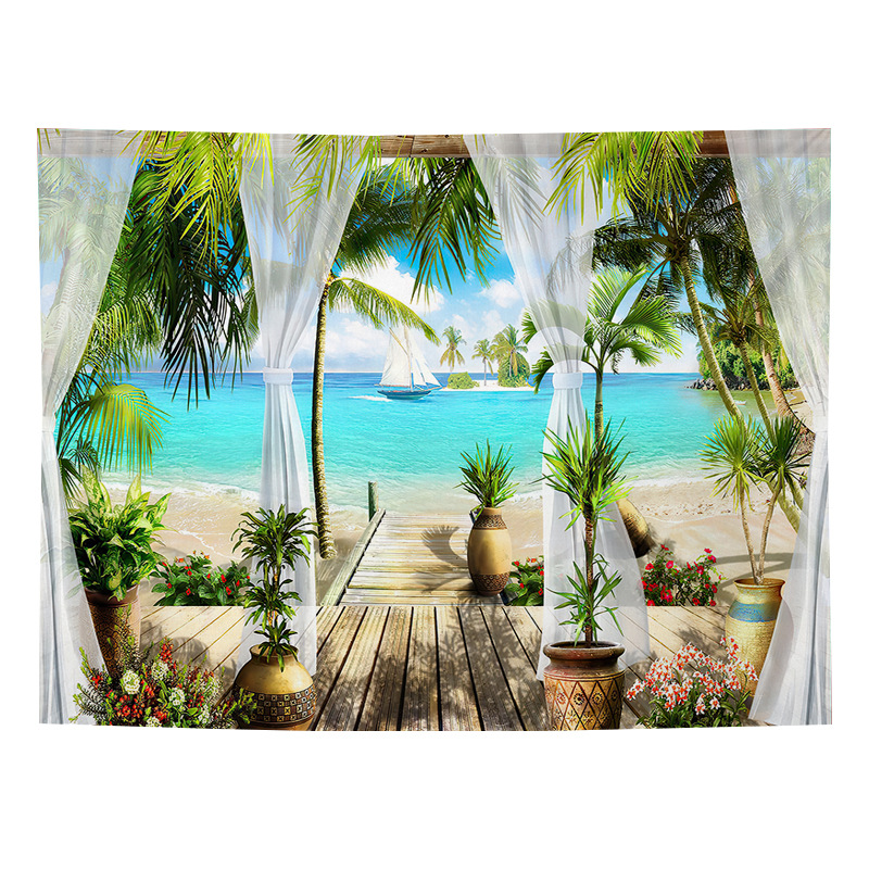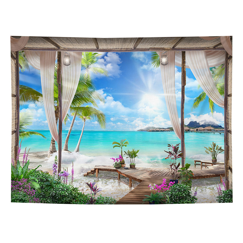 Sea view decorative fabric, dormitory home wallpaper, ins live broadcast background tapestry, psychedelic forest
