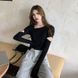 Jednobarevné úzké tričko s dlouhým rukávem pro ženy s dírami a kulatým výstřihem jako základem, podzimní přiléhavý střih