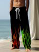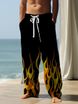 Sports casual for men's spring and autumn straight tube loose double pocket drawstring pants with flame print new style