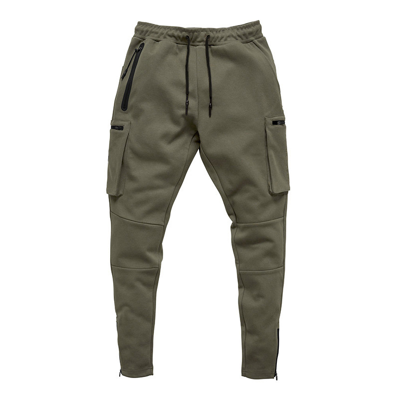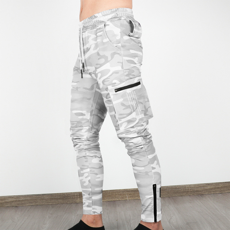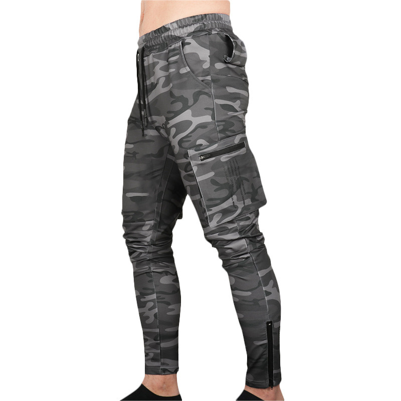 Spring and Autumn casual youth straight leg multi pocket camouflage pants, men's zippered small ankle sports pants