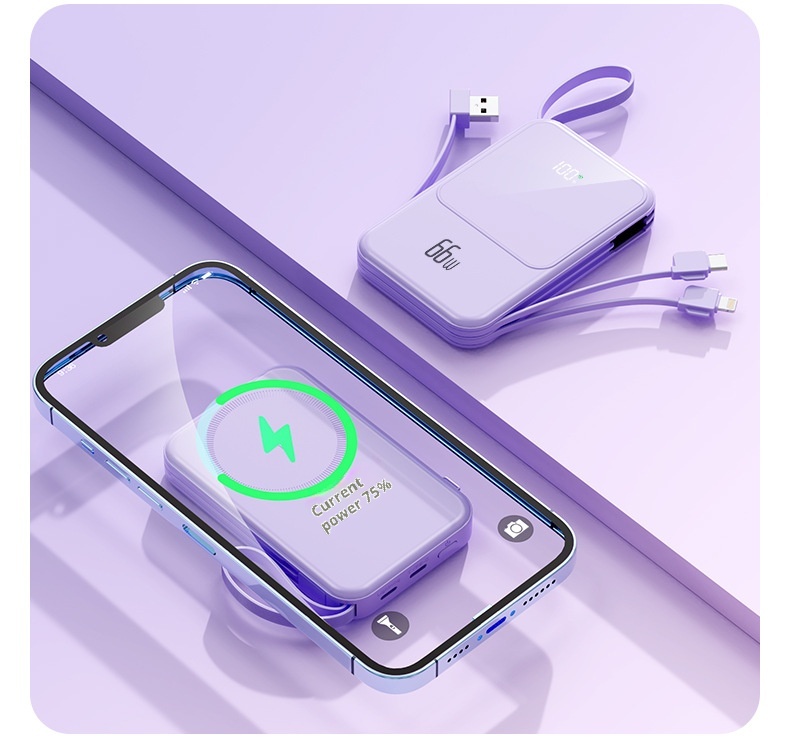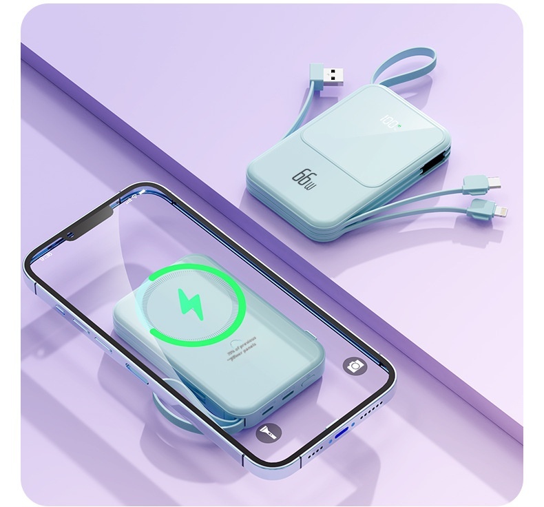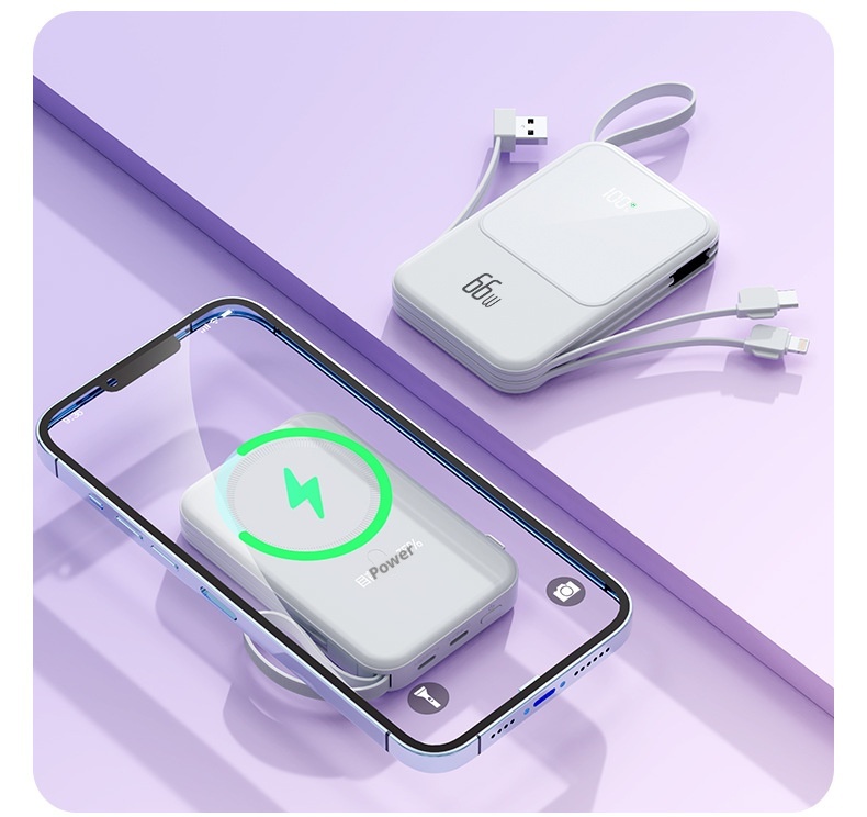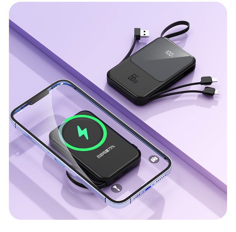 TechGlobe Built-in Dual-Wire Magnetic Wireless Charging Power Bank 10000mAh Mini Compact Portable Charger