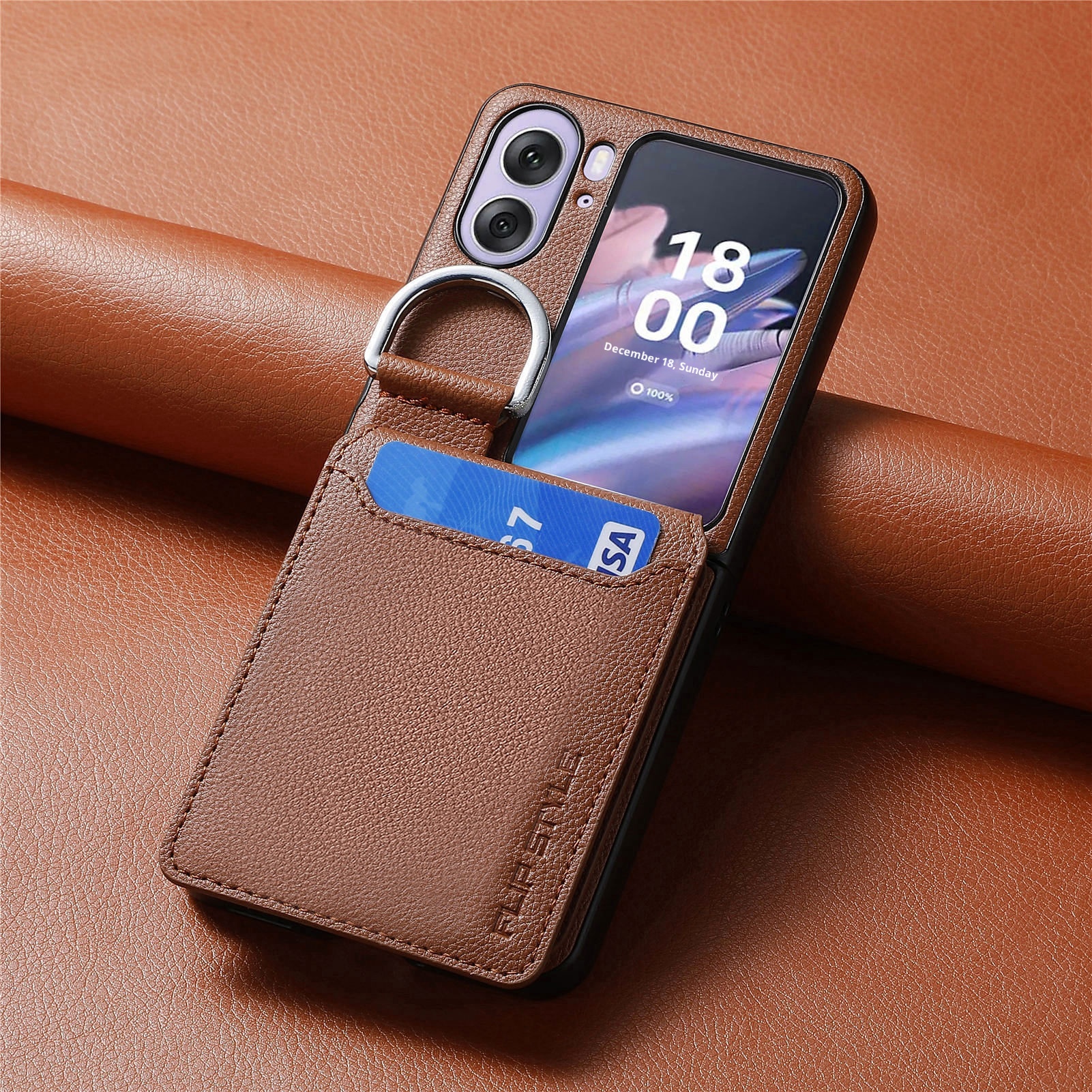 TechGlobe Compatible With OPPO Find N3 Lychee Pattern Flip Cover Holder Ring Phone Case Multi-Functional Card Slot Stand