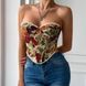 Vesta s potiskem květin, zavinovacím lemem a šněrováním ve francouzské niše s motivem rybí kosti 70112