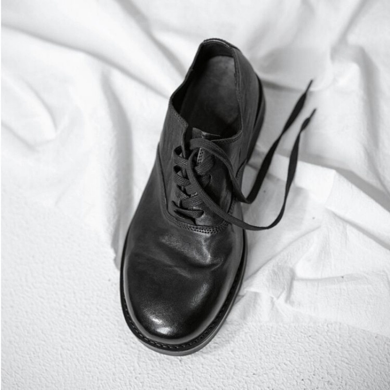 WalkPrime Japanese Retro For Men Dark Black Yamamoto Handmade Trendy Unique Vintage Genuine Leather Soft Cowhide Shoes Summer