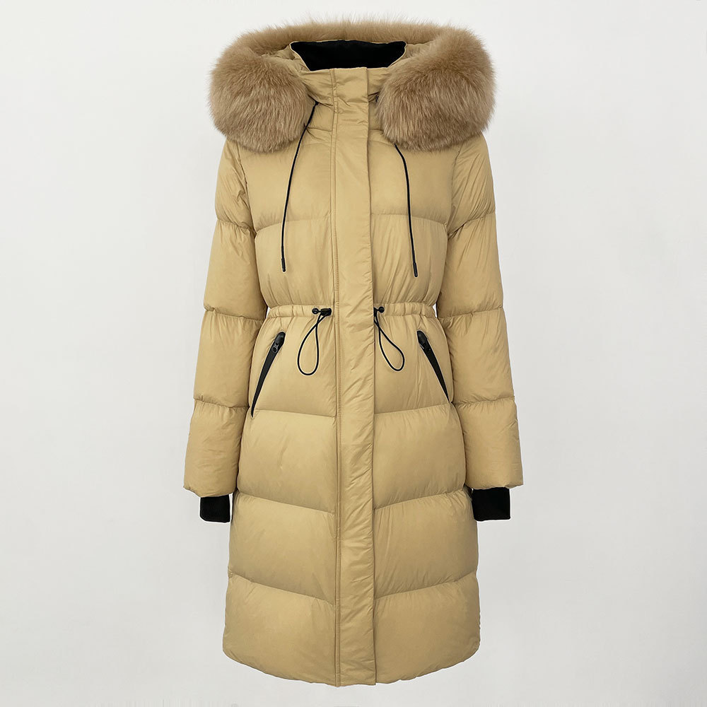 Women's down jacket, high end women's black and gold upgraded version, long, high quality 90% white duck down, thickened and warm jacket