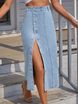 Dámská džínová sukně s vysokým pasem, zapínáním na knoflíky a nepravidelným rozparkem