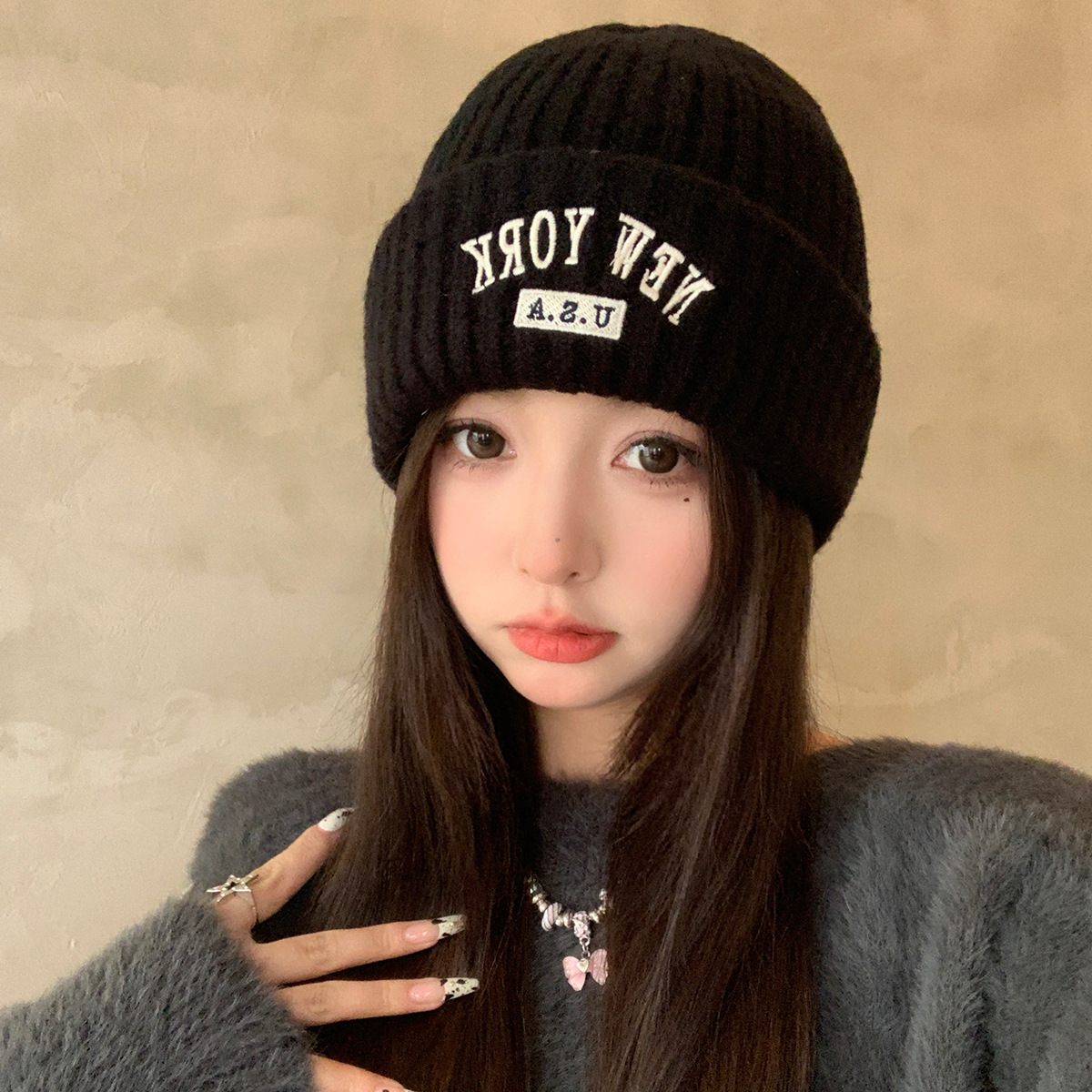 Wool versatile autumn and winter, thicked insulation cover, cap, cold hat, big head circumferce, knitted hat for