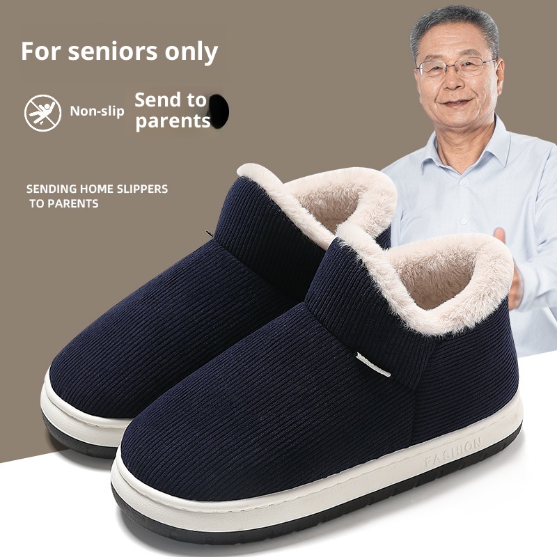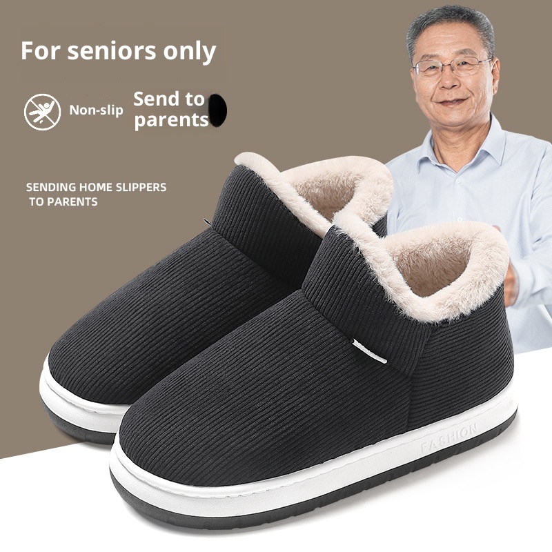 Zees Plush Warm Shoes Men Winter Outdoor Wear Middle-aged And Elderly Home Indoor Thick-soled Non-slip Closed-back Cotton